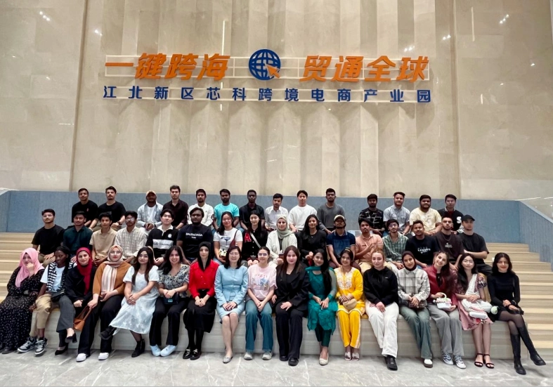 当“一带一路”的东风遇见数字浪潮,4月24日的南京江北新区跨境电商产业园迎来了一场跨国界的思想碰撞。来自南京工业大学的50余位留学生齐聚芯科产业园,在第二届江苏省高校“丝路电商”创新挑战赛前夕开启实训之旅。他们带着对跨境电商的好奇,走进选品中心,触摸“产业带+跨境电商”的创新脉搏,这场“我为江苏优品代言”赛前实训课,正为国际青年打开中国电商经济的万花筒。从选品中心琳琅满目的”中国制造“展陈,到威尔斯珠宝企业课堂的实战教学,留学生们在园区完成了一次跨境电商的深度穿越。