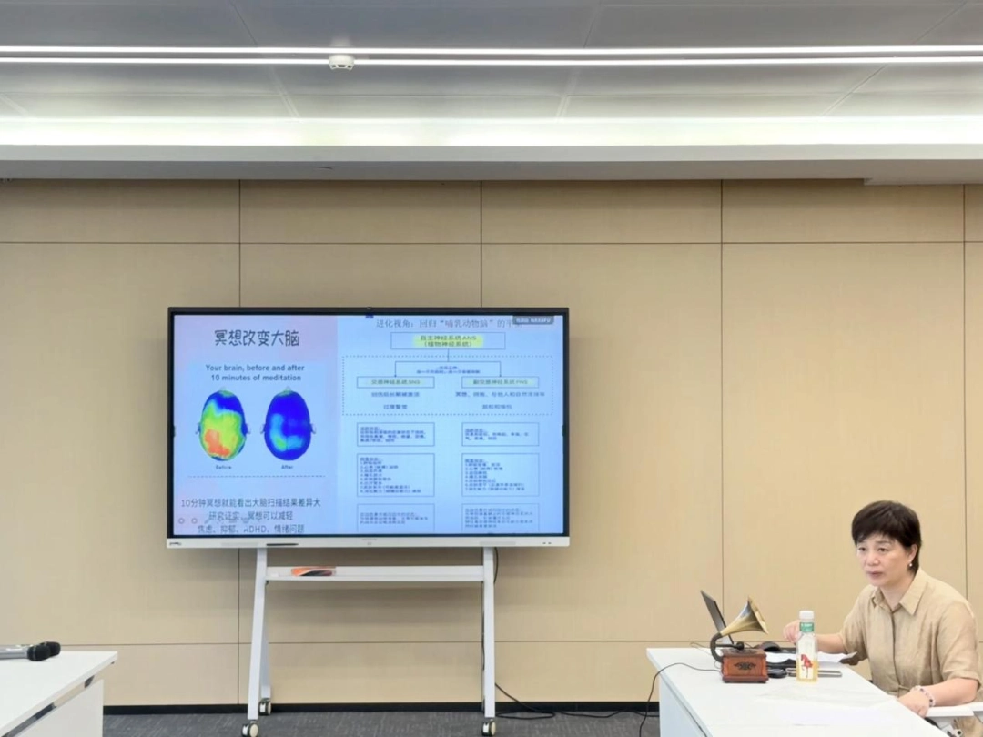 活动现场,导师以丰富的团体心理辅导经验,通过“呼吸锚定法”“身体扫描冥想”等专业技术,引导参与者从“忽略身体感受”到“扫描身体的细微感知”,唤醒身心联结的直觉力,学会从身体感受觉察情绪状态;从“冥想是‘奢侈事’”到“5分钟正念可复制”,掌握日常化的身心调节工具,让正念成为触手可及的内在资源。理解身体所发出的信号,认识到身体的直接参与和感知是认知与情绪调节的关键。